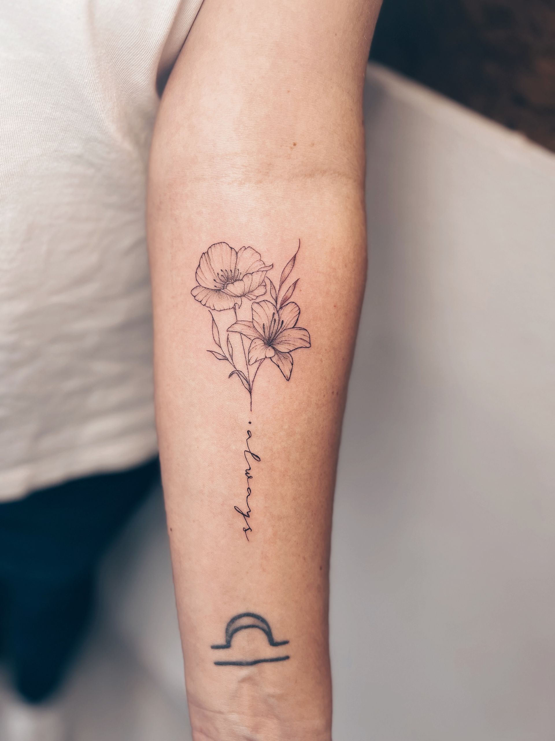 Ich liebe es, feine filigrane Motive zu stechen. Die Natur dient mir als Inspiration für eure floralen Tattoo. Jedes von mir erstellte Tattoo ist ein Einzelstück. Zu den aktuell beliebtesten Tattoo zählen sicherlich die Geburtsblumen. Dies ist eine wunderschöne Alternative zu Geburtsnamen oder Daten.